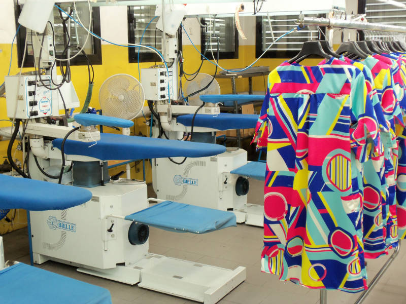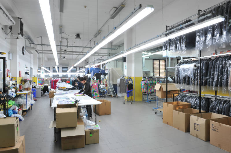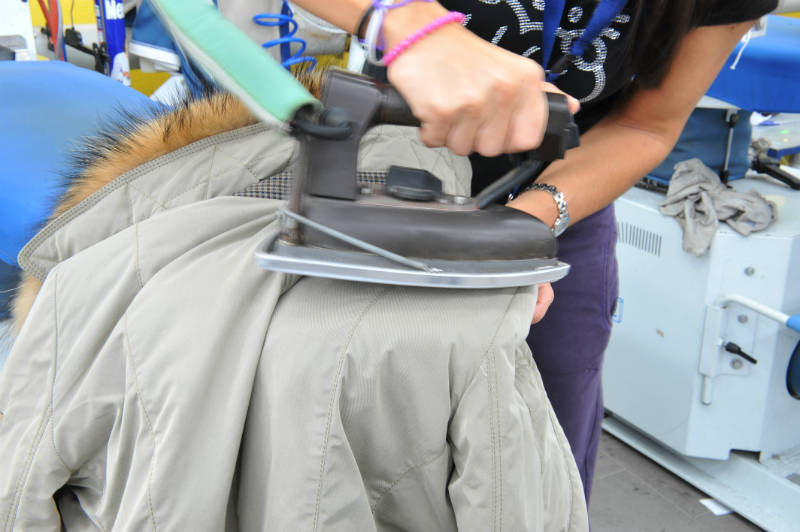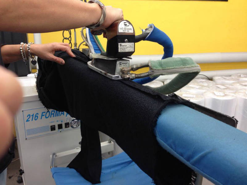 In una zona è presente il reparto stiro composto da tavoli da stiro soffianti e non soffianti utilizzati per lo stiro e ripasso dei capi, da manichini capospalla e da topper per pantaloni (tutti a norme CE).